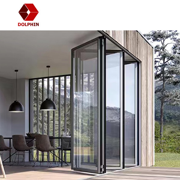 DOLPHIN Disesuaikan Tahan Air Aluminium Pintu Lipat Kaca Sliding Folding Doors Bi Fold