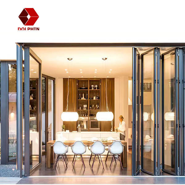 Pintu Lipat Aluminium DOLPHIN Kaca Akordeon Dapur Kustom Aluminium Bi Fold Doors